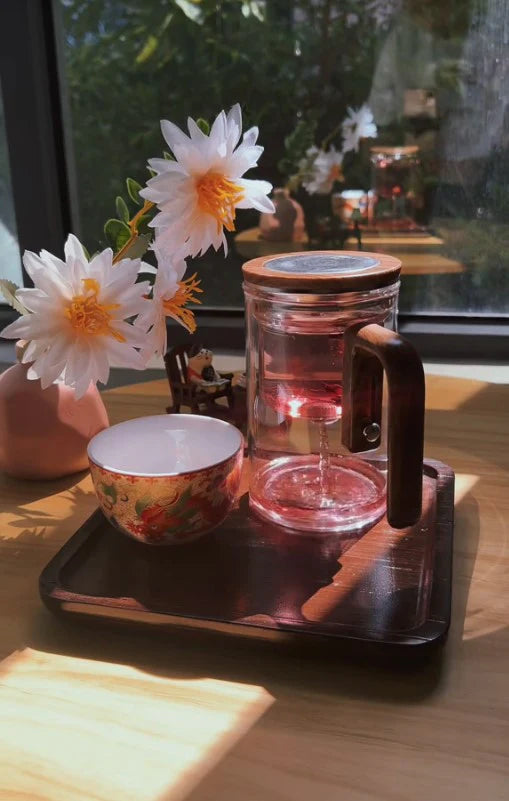 Crafted with clear glass and warm wooden details, our teapot lets you watch your tea bloom, offering a refined and simple aesthetic to every tea session.